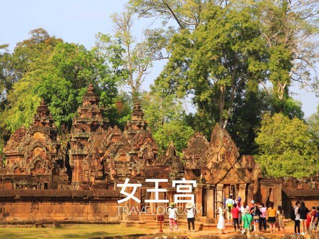 女王宫,有“女人的城堡”之意,以艳丽的色彩和精美的浮雕而闻名于世,据说是由女性修建和雕刻的。“柬埔寨三大圣殿”之一的女王宫,建于967年的罗贞陀罗跋摩二世(Rajendravarman)王朝,而于1002年的阇耶跋摩五世(Jayavarman V)王朝完成。这座印度教寺庙供奉着婆罗门教三大天神之一的湿婆。有别于其他吴哥古迹使用青砂岩为材料,女王宫大量使用红色砂岩作为建筑材料,色彩极为艳丽,也利于雕刻复杂细腻的图案。女王宫遍布精美的浮雕,有“吴哥艺术之钻”之称。