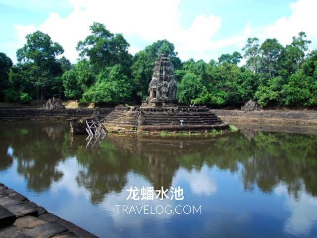 龙蟠水池建于12世纪,是佛教庙宇,大水池中央有个小岛,岛上只有一座仿造「须弥山」而建造的石塔小寺庙,石塔上雕刻两只缠绕的巨蛇王(Naga),小岛东侧还有一座白马雕像,而Neak Poan的意思“缠绕的巨蛇”,就是取自岛上的巨蛇王像而得名。