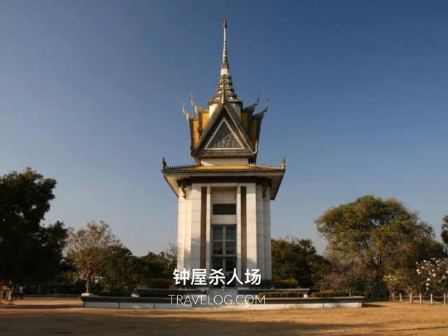 钟屋杀人场位于金边南郊,距离市区15公里,曾经是红色高棉的集中营。死在这里的多是来自S-21监狱的犯人,包括男女老少和婴儿,到目前为止在杀人场挖出的尸体就有9000多具,所以此处又称万人塚。1988年,金边政府在此建了一座佛塔,用来安放从坟塚里挖掘出来的头骨,借以追思纪念无辜的亡魂。